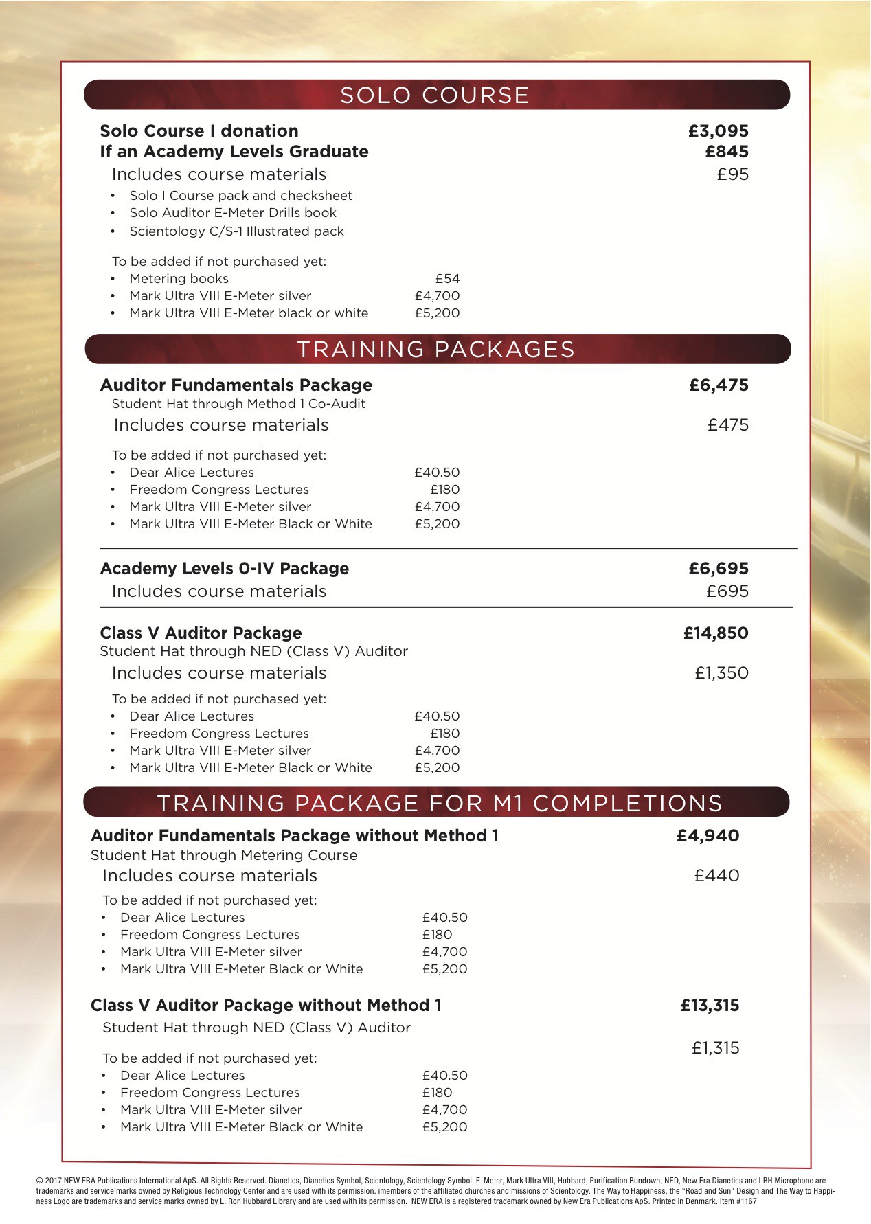 | New Era Dianetics | 3 x 12.5 hr | $5,600 | $16,800 |