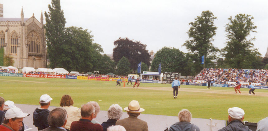The Kings College. Half a mile NW of station. Turn left out of the station and walk along the main road parallel to the railway line, past the Cathedral. If you sit on the same side of the ground as the railway you will find it second only to Richmond for extraneous noise.