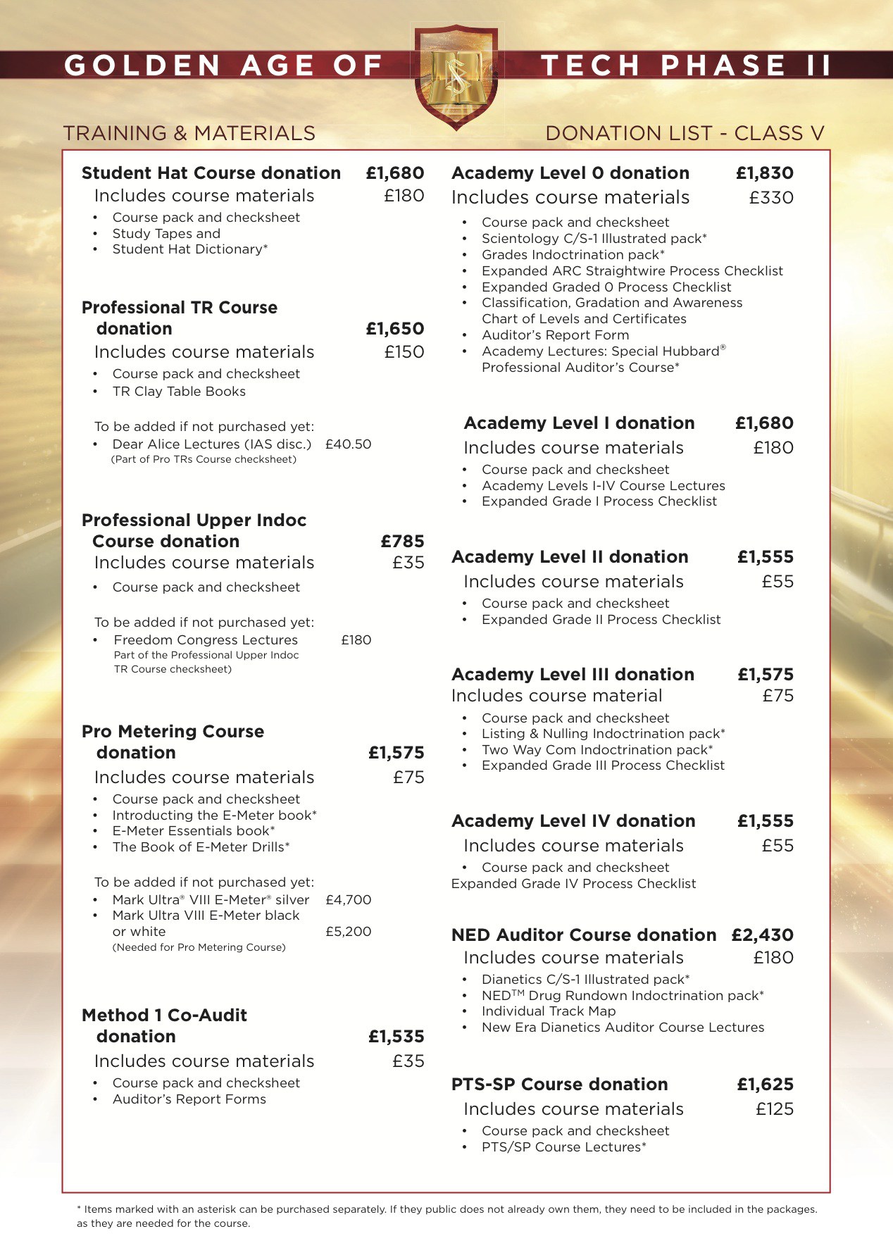 | New Era Dianetics | 3 x 12.5 hr | $5,600 | $16,800 |