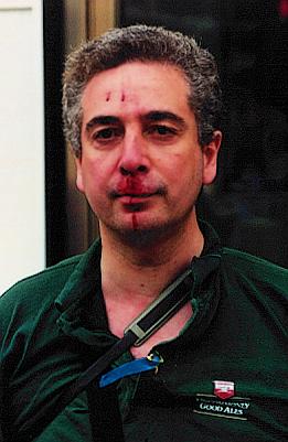 Duke, drowned by Scientologists in an attempt to intimidate the judge)spattered with blood