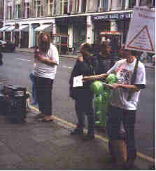 The picket with added BodyThetans. Small plastic models, big inflatables that squeaked when squeezed.