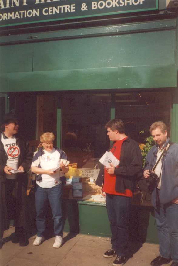 about 3:00 we started picketing outside the Scientologists' bookshop and