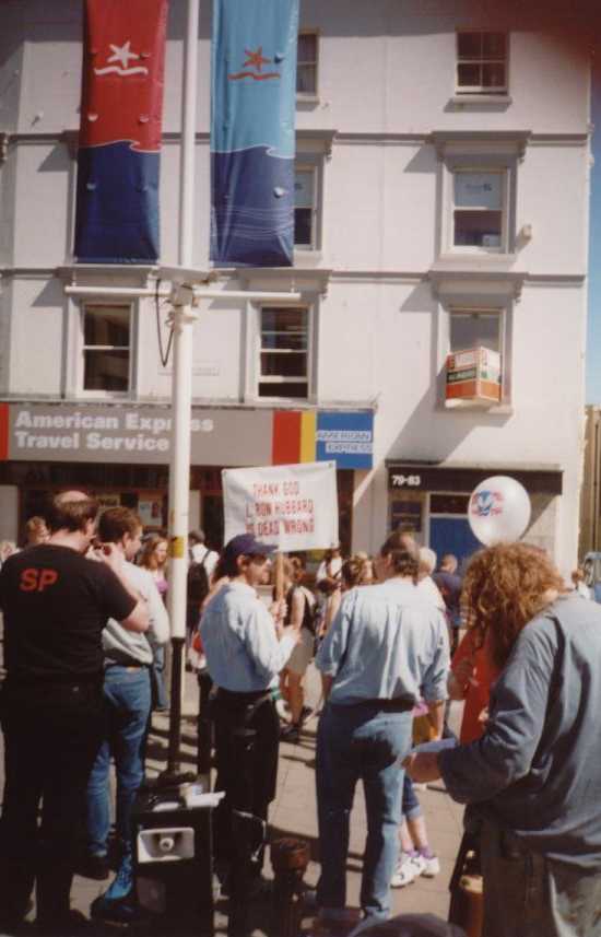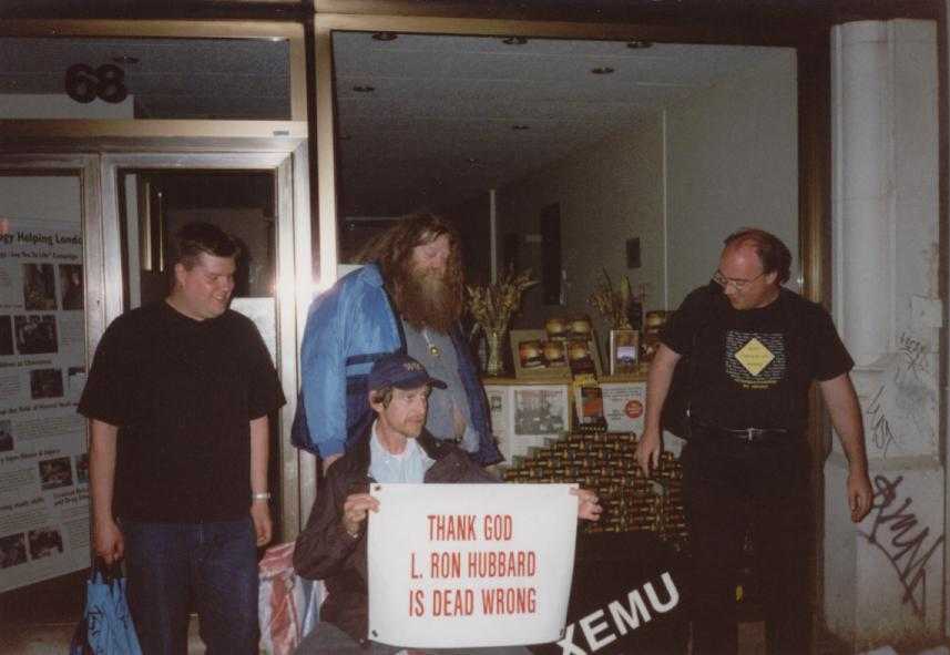 the usual chant about Scientology being a barmy UFO cult. We handed out