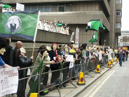 Another "Anonymous" picket around the world. London was enhanced by the presence of Tory/Magoo and Mark Bunker.