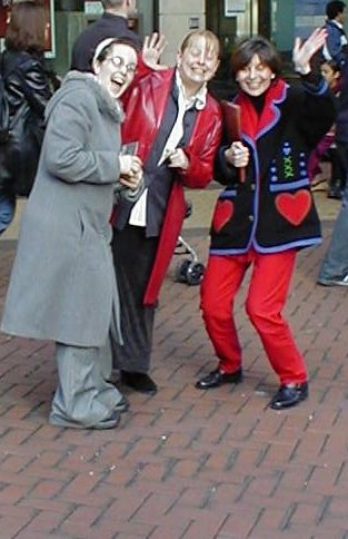 sound-system, Jens on helium balloons, Hartley on one corner as a fixed leafleter, me as a