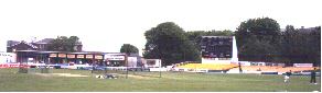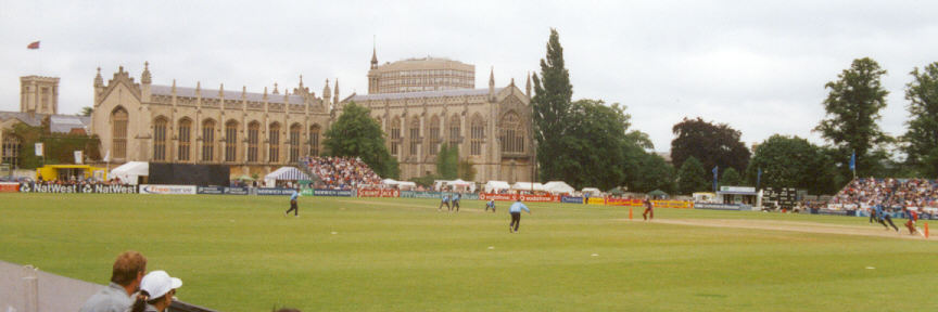The Kings College. Half a mile NW of station. Turn left out of the station and walk along the main road parallel to the railway line, past the Cathedral. If you sit on the same side of the ground as the railway you will find it second only to Richmond for extraneous noise.