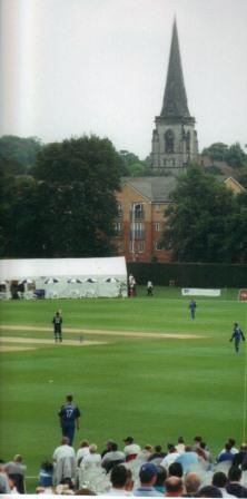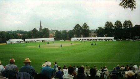 but it is very pleasant with marquees in front of the trees that ring the ground, and a battlemented tower on the